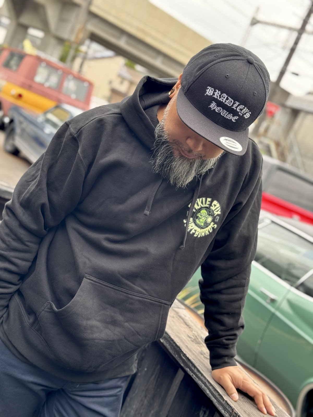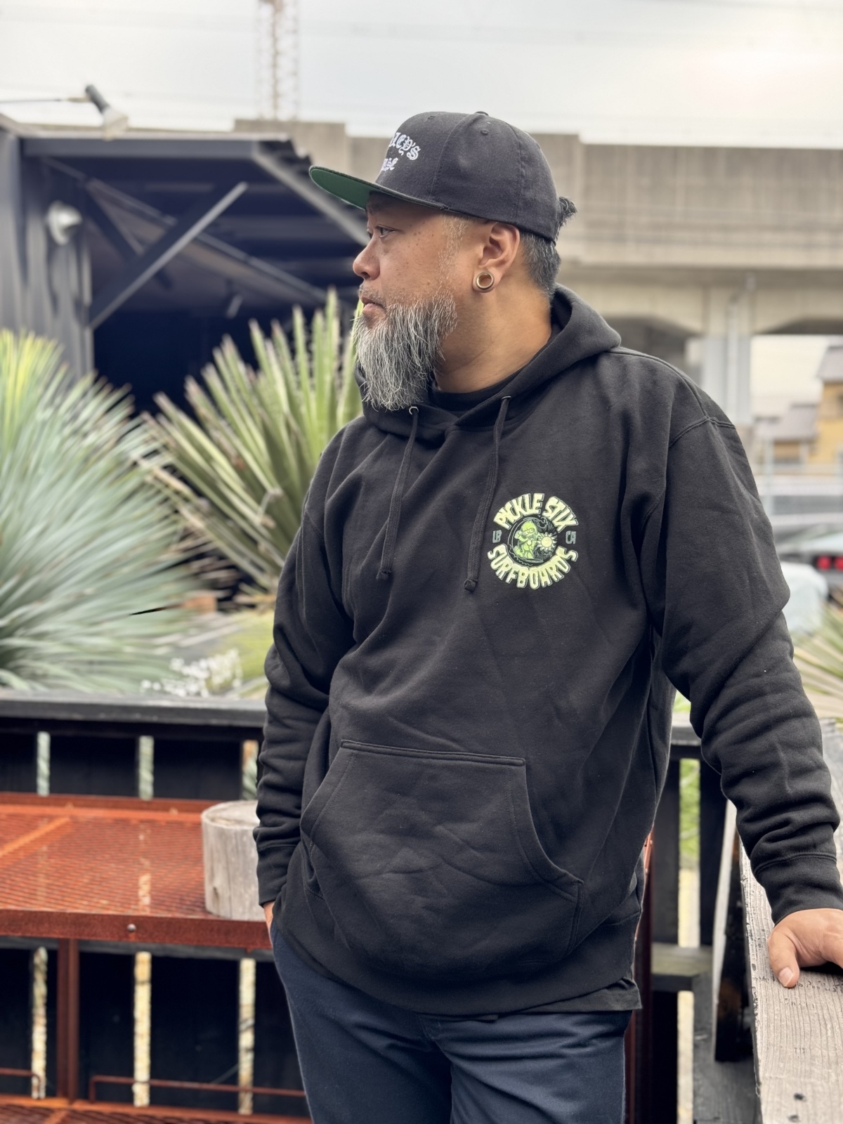 送料無料 PICKLE STIX SURFBOARDS (SMELLY by NOFX) / PICKLE FINK プルオーバーパーカー BLACK
