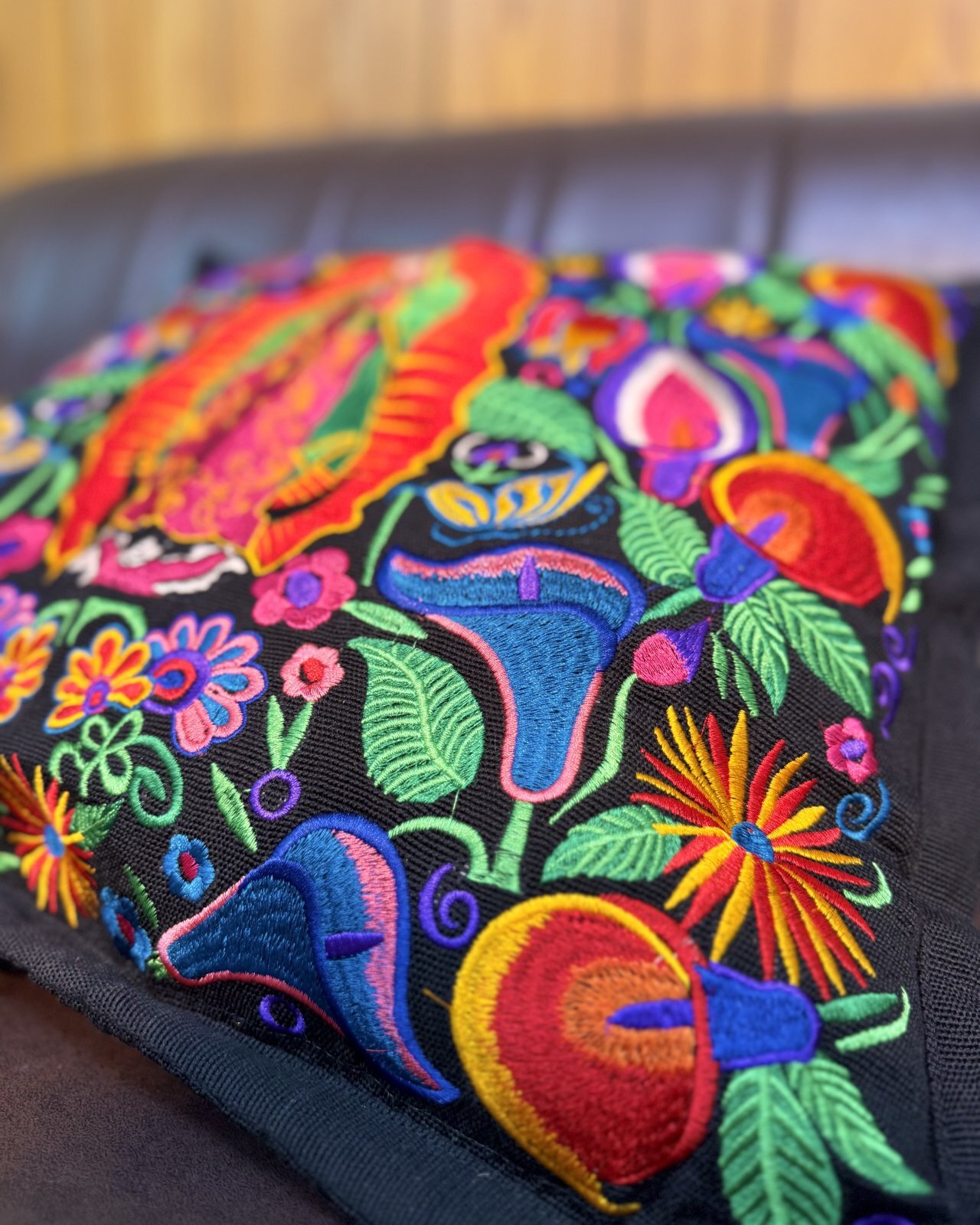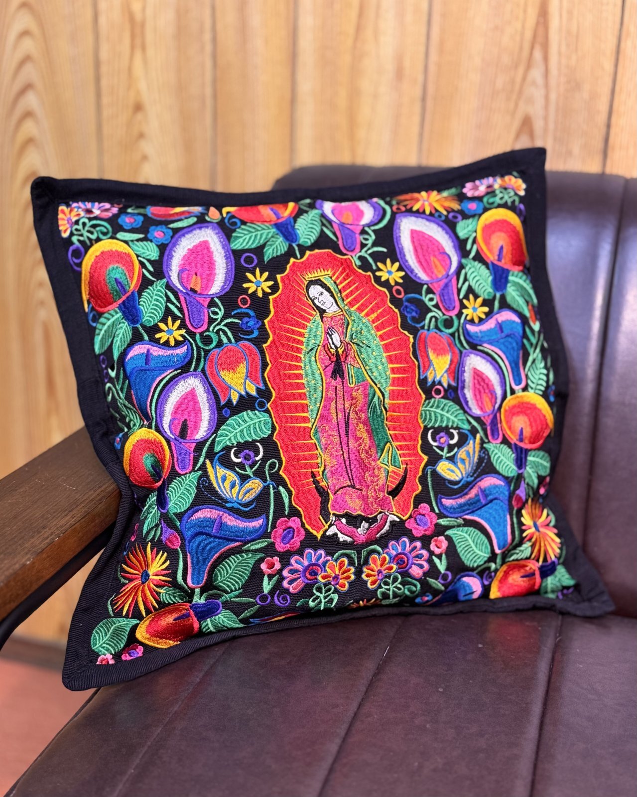 送料無料 ESTRELLA STANDARD / GUATEMALA  ALL刺繍 グアダルーペ カラーリリー クッションカバー&ヌードクッションセット ブラック