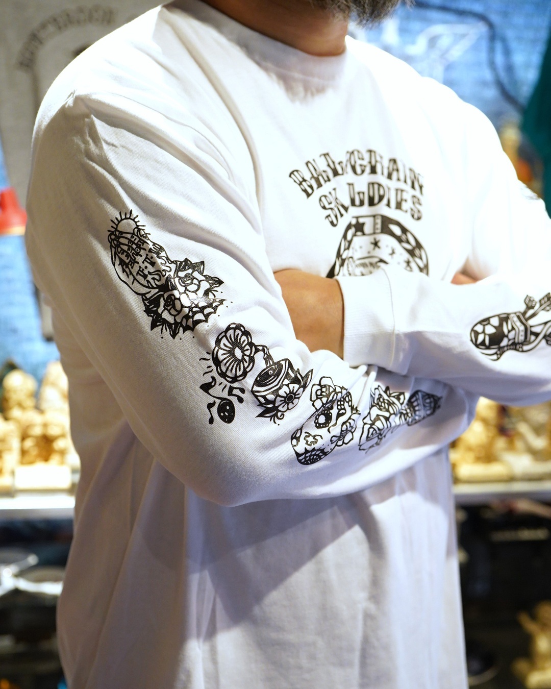 送料無料 SK OLDIES x BALL&CHAIN Collaboration L/S T-shirts Designed by BLACKSTAR TATTOO JUN WHITE
