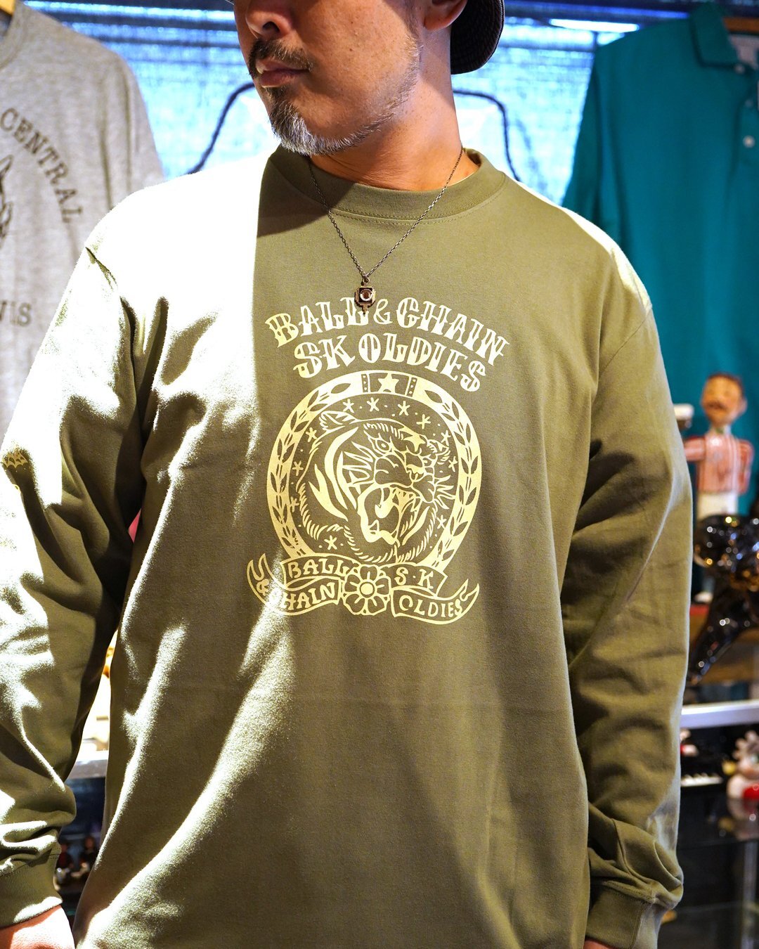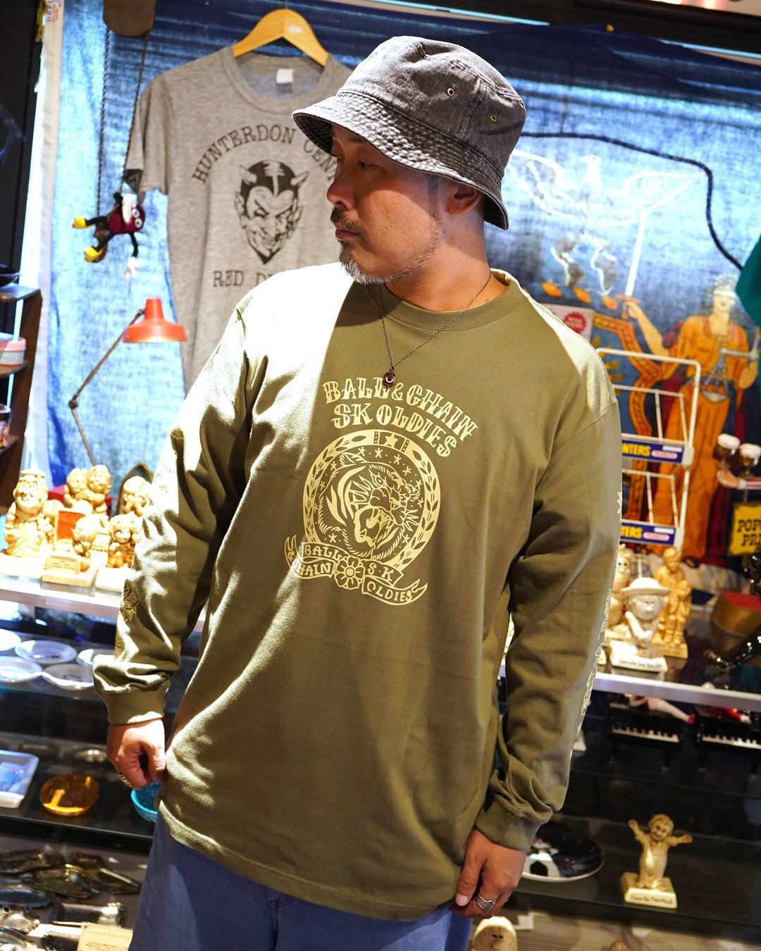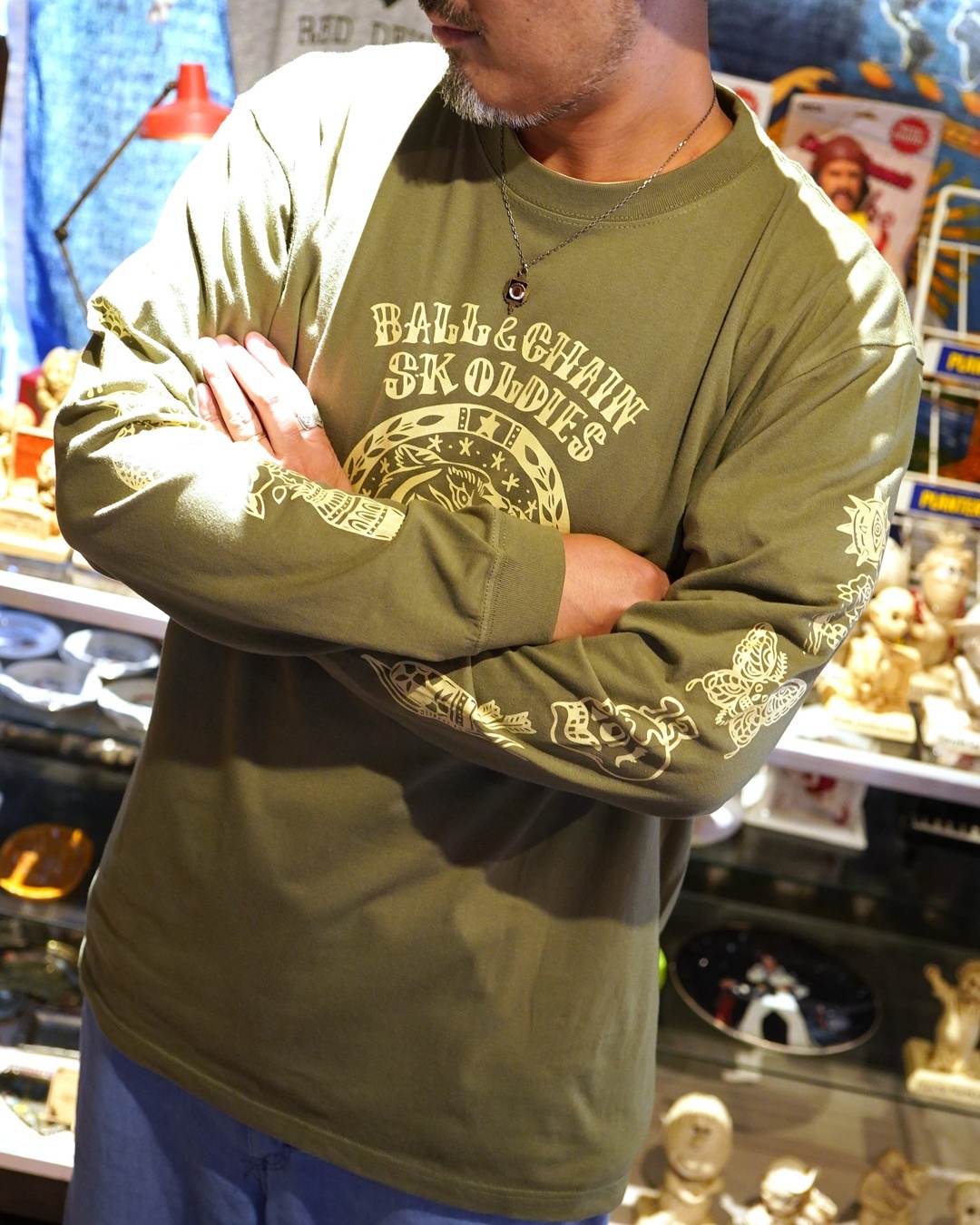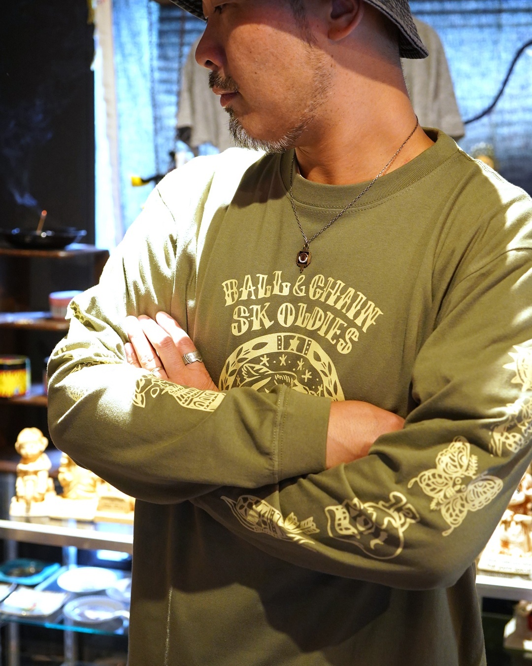送料無料 SK OLDIES x BALL&CHAIN Collaboration L/S T-shirts Designed by BLACKSTAR TATTOO JUN LIGHT OLIVE
