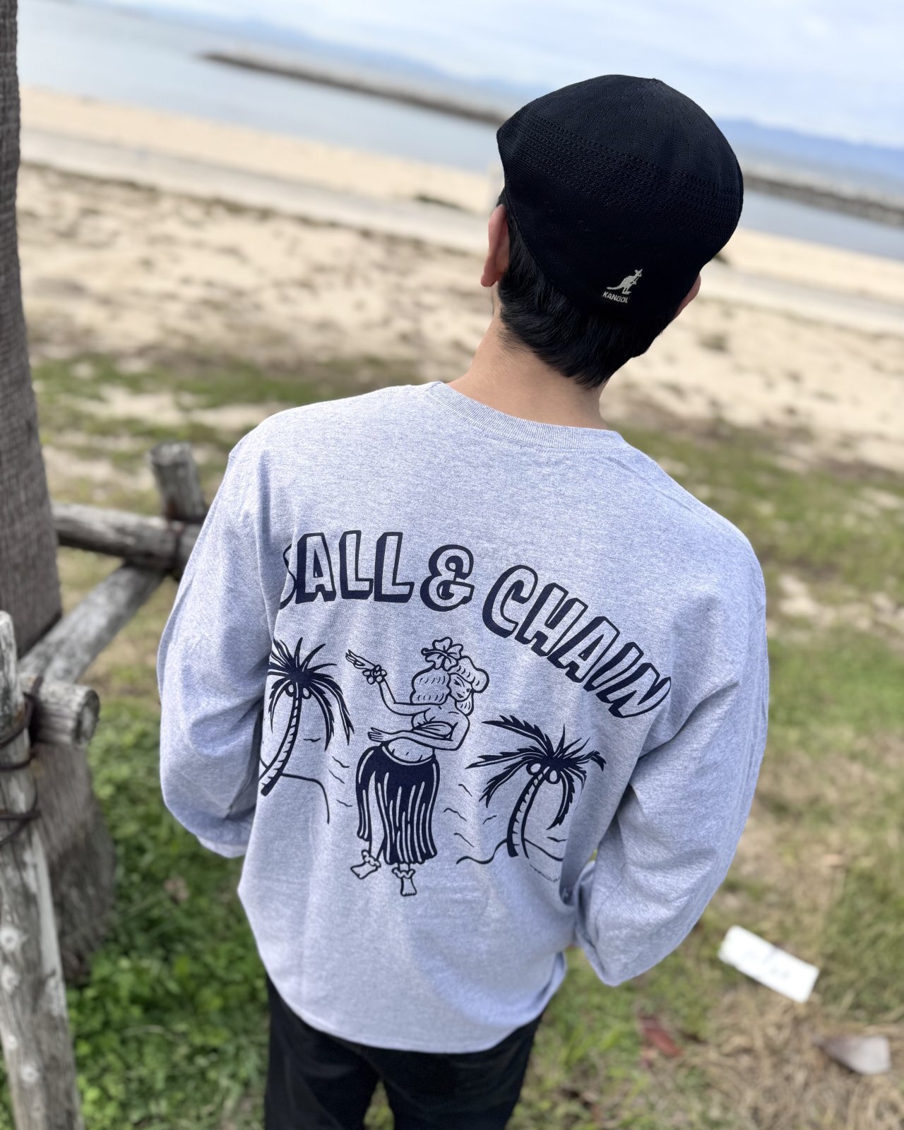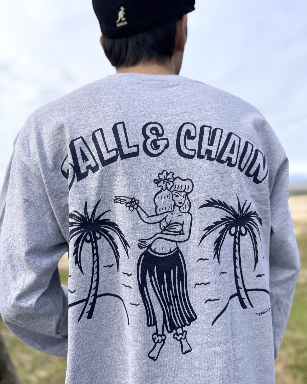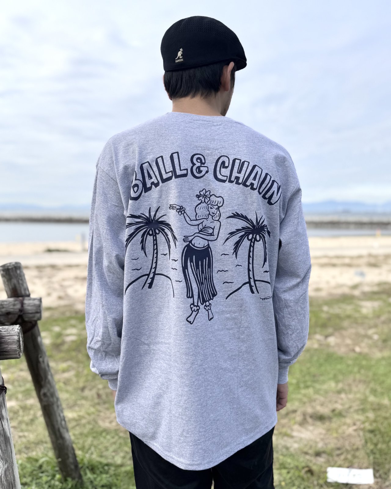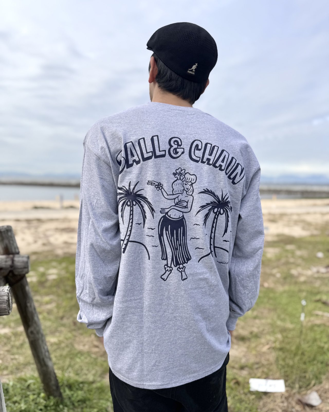 送料無料 FUCKIN' MELLOW CLOTHING / Hula Girl Artwork by LOWHIDE 長袖ポケットTシャツ SPORTS GREY
