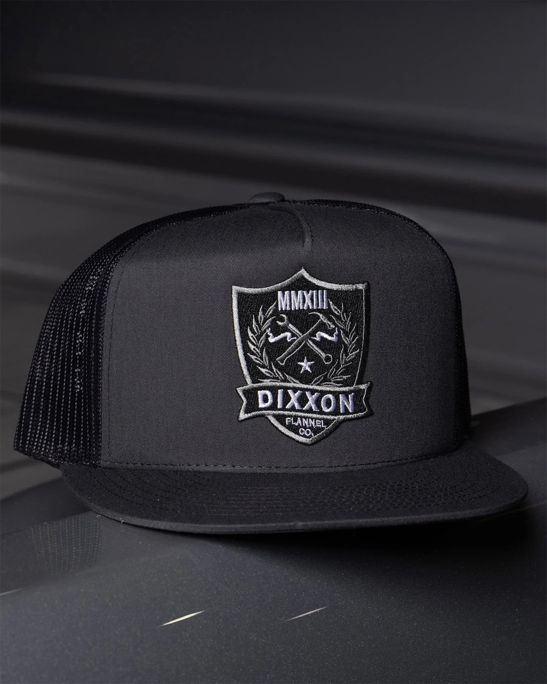 送料無料 DIXXON FLANNEL CO / Shield Flat Bill スナップバックキャップ CHARCOAL
