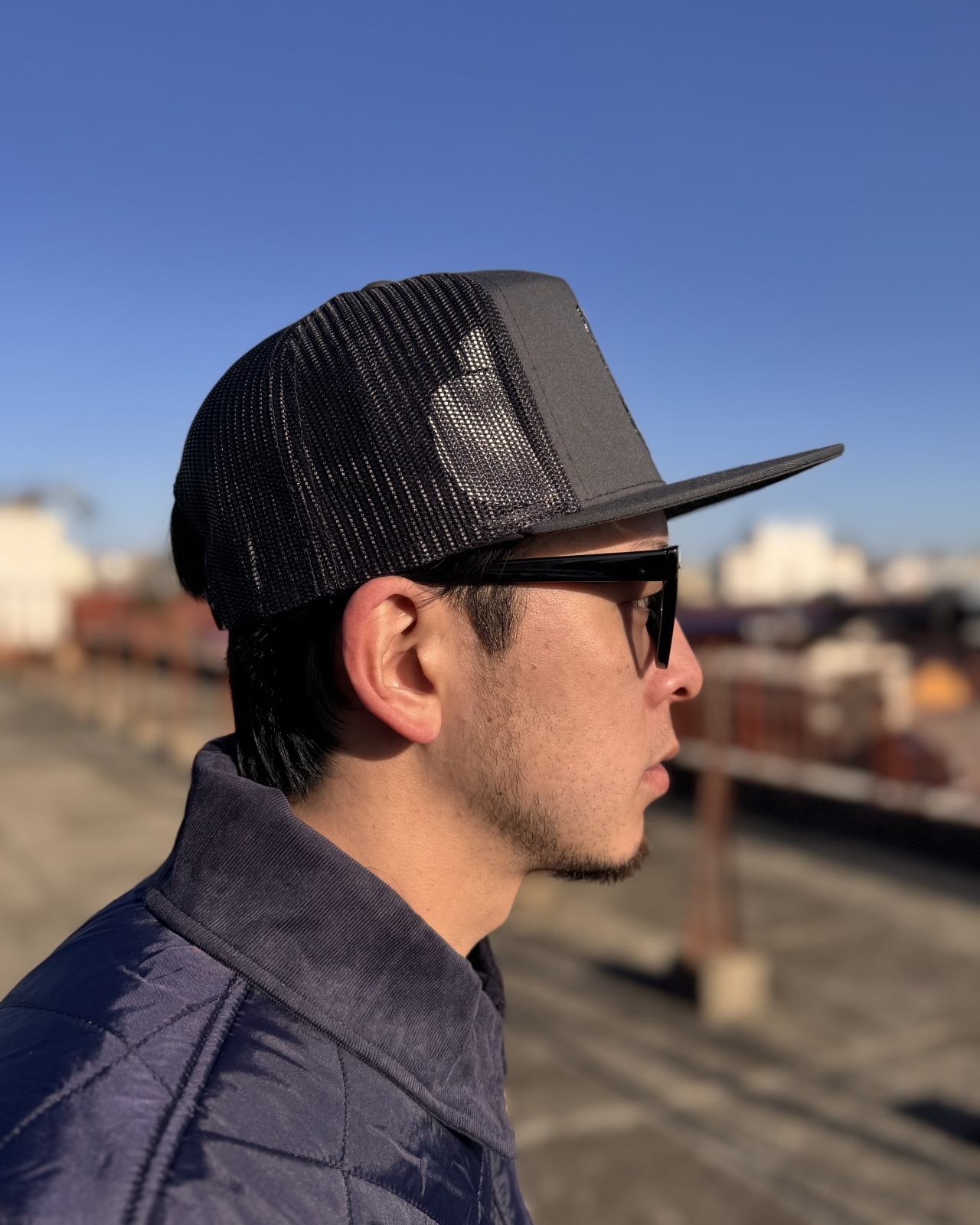フロントのホワイトシールドのグラフィック刺繍がかっこいい
