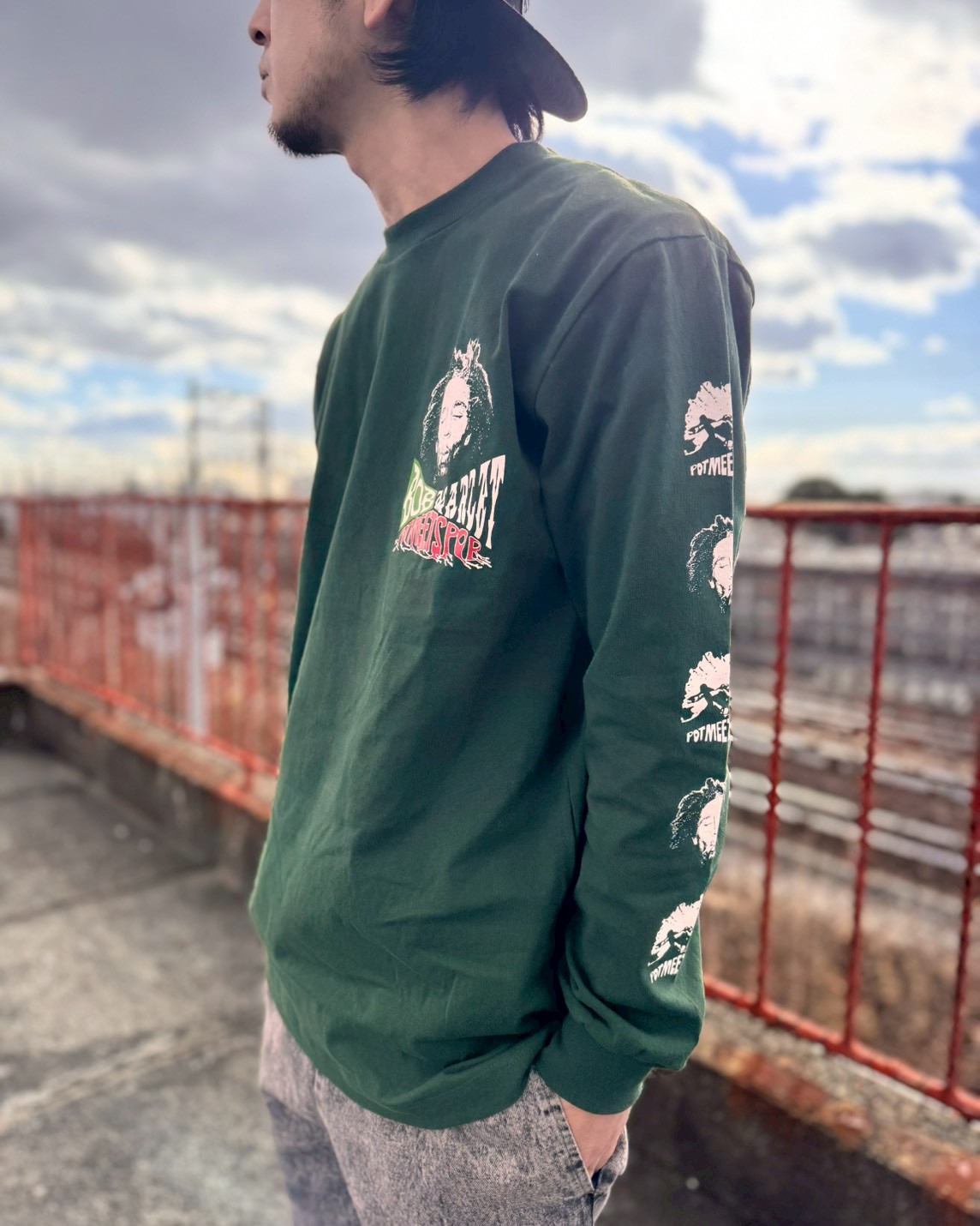 送料無料 Lラスト1枚で終了 BOB MARLEY x POT MEETS POP / Uprising 長袖Tシャツ フォレストグリーン