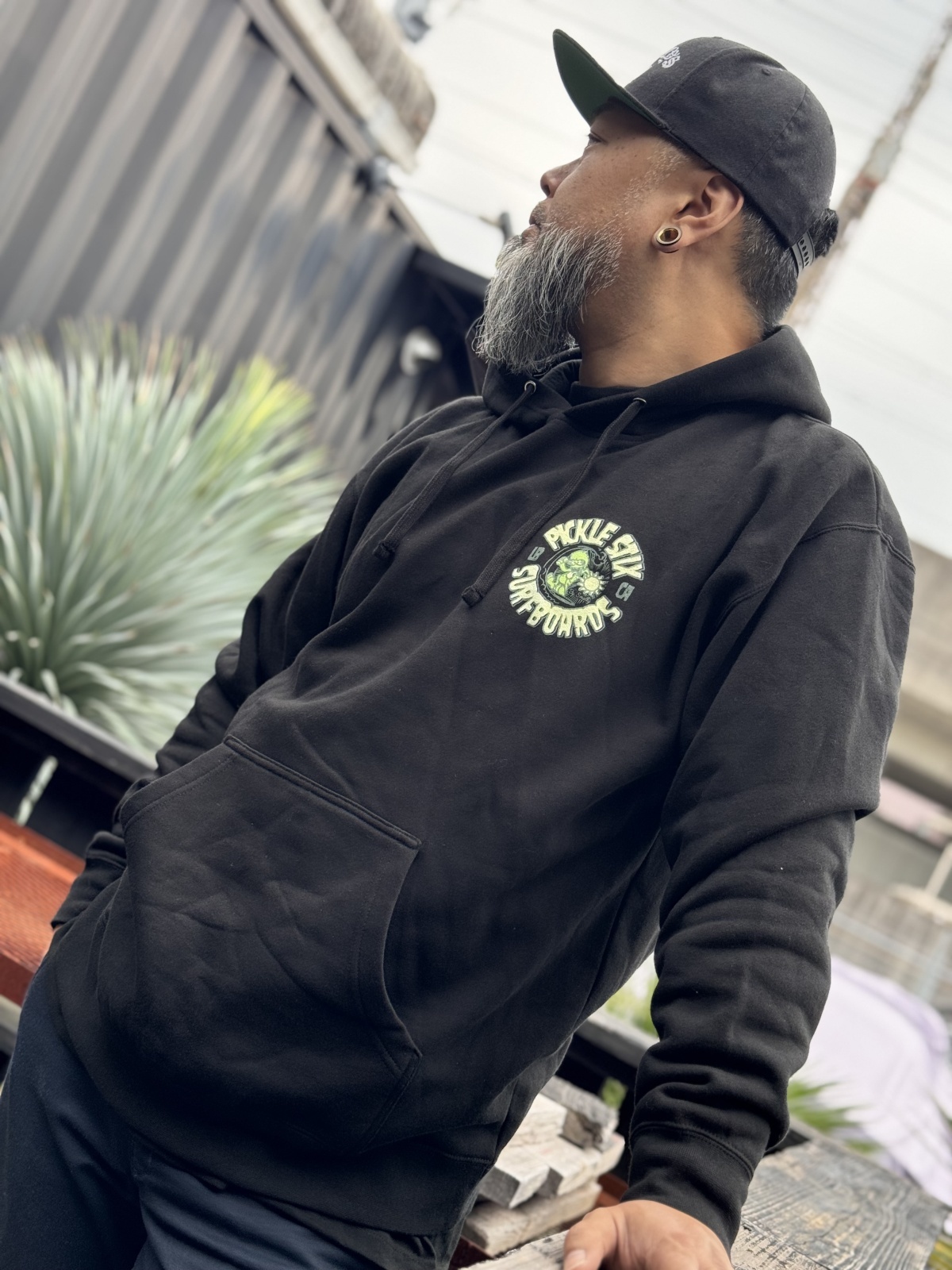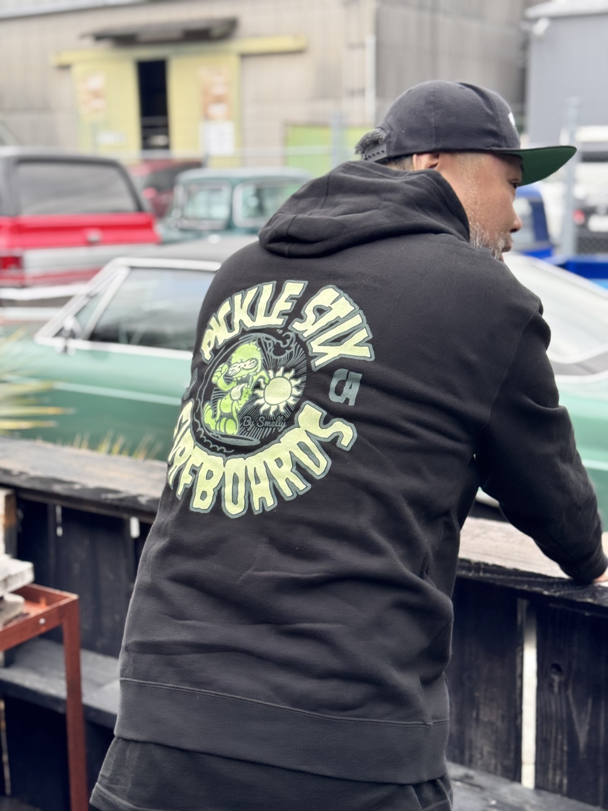 送料無料 PICKLE STIX SURFBOARDS (SMELLY by NOFX) / PICKLE FINK プルオーバーパーカー BLACK