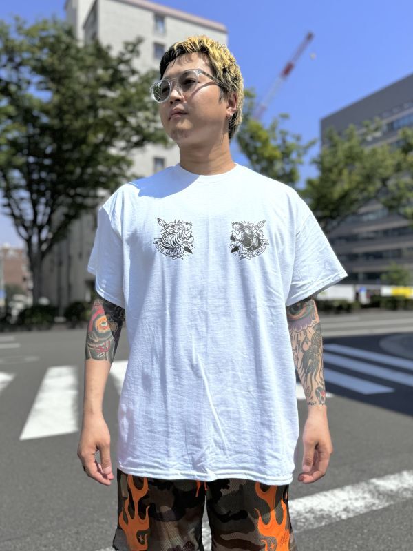 FUCKIN' MELLOW CLOTHING / Old Panther artwork by JUN of Black Star Tattoo 半袖 Tシャツ WHITE