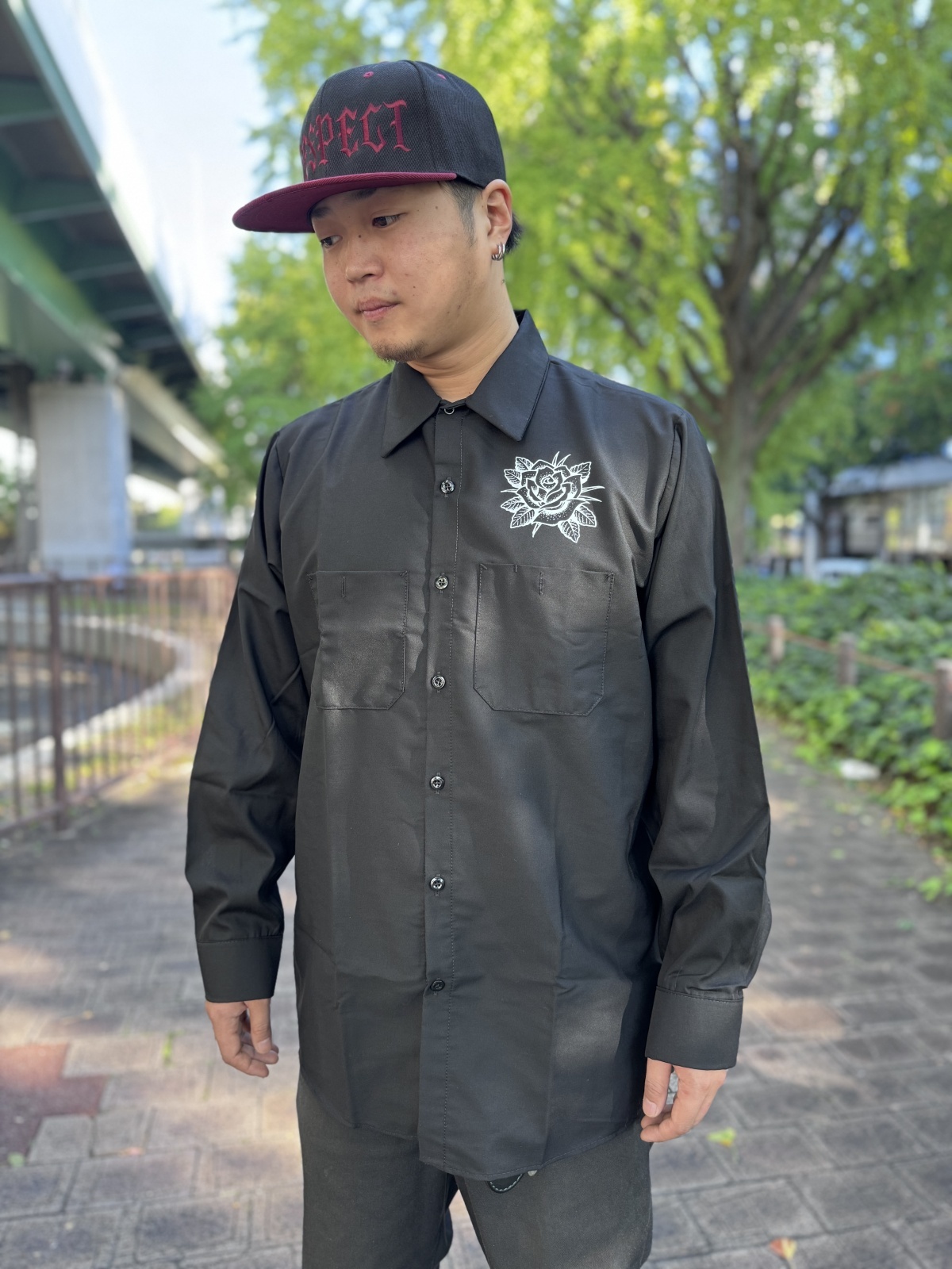 送料無料 FUCKIN' MELLOW / LBC Skull Artwork by WACKY REDKAP 長袖ワークシャツ ブラック