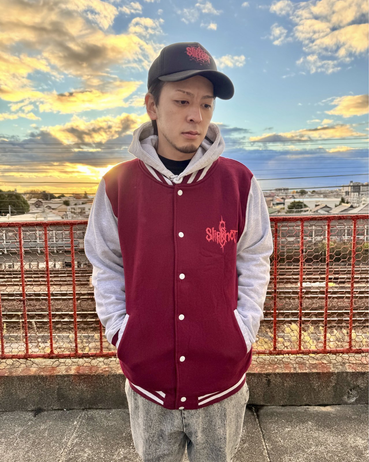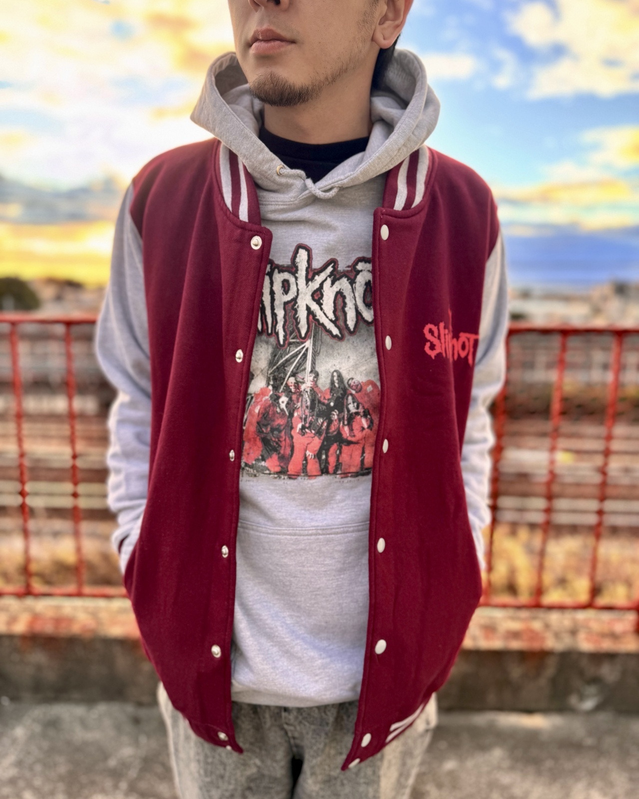 送料無料 SLIPKNOT / 9-Point Star ジャケット MAROON / GREY