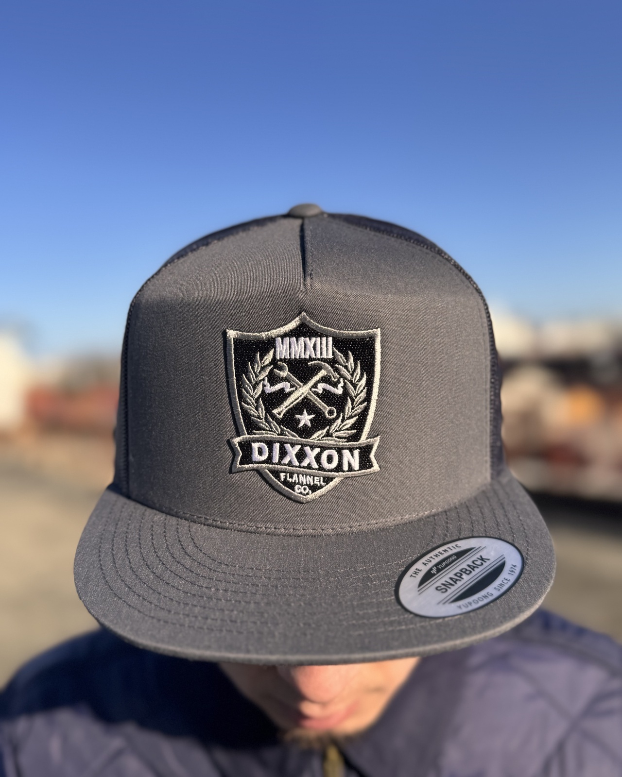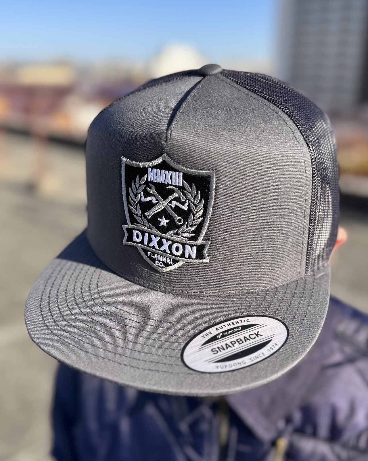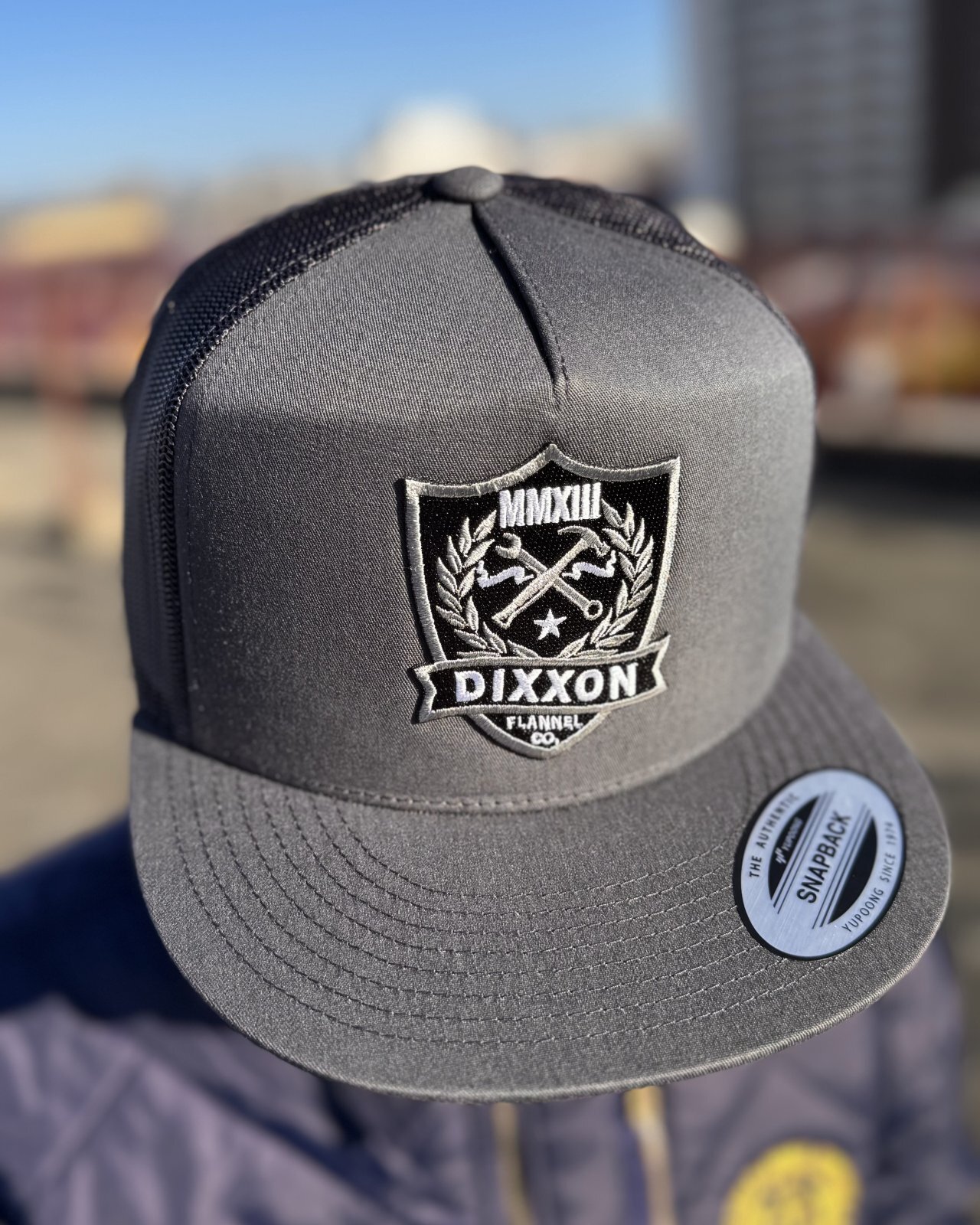 送料無料 DIXXON FLANNEL CO / Shield Flat Bill スナップバックキャップ CHARCOAL