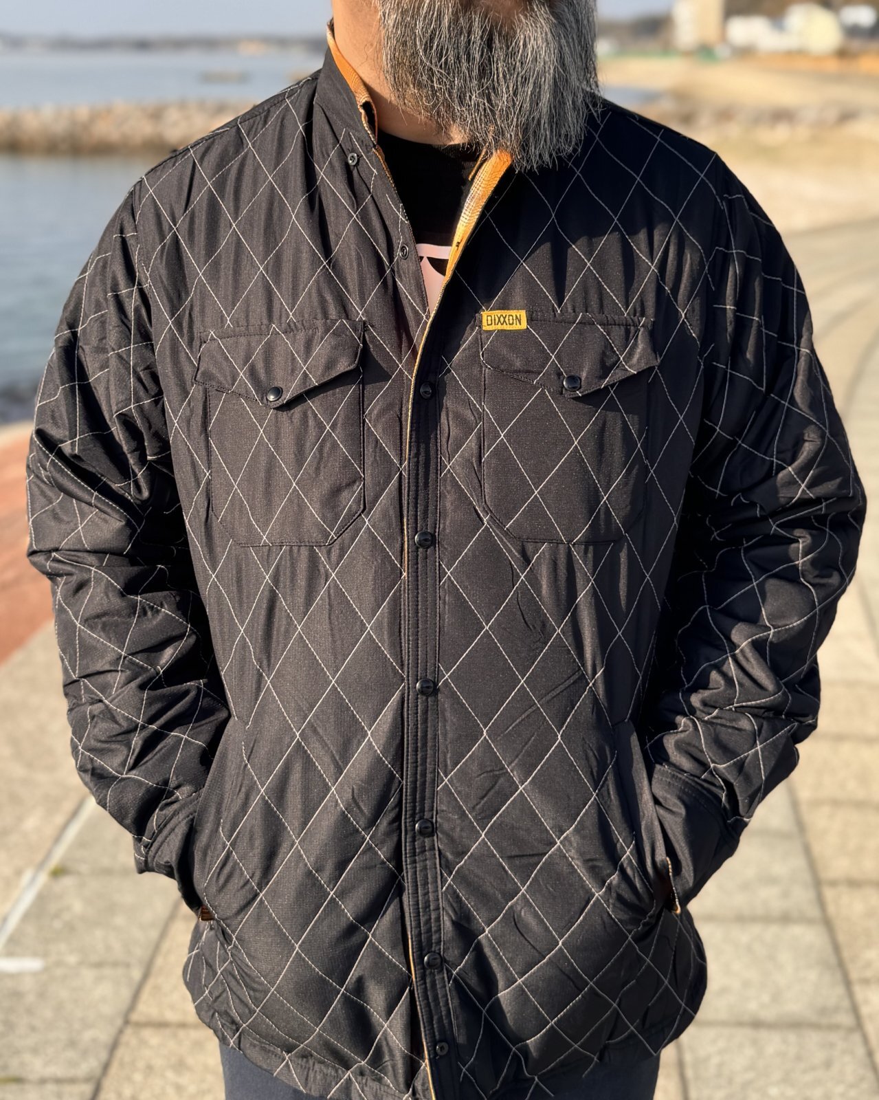 もう片面は反射ダイヤモンドステッチを施したブラックの耐水シェル